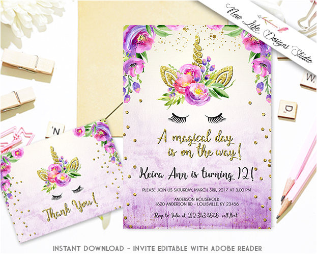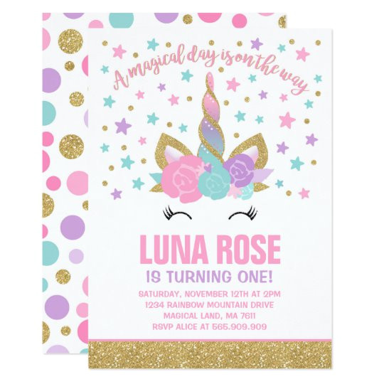 unicorn invitation pastel unicorn invitation with gold from Birthday Invitation Template Unicorn