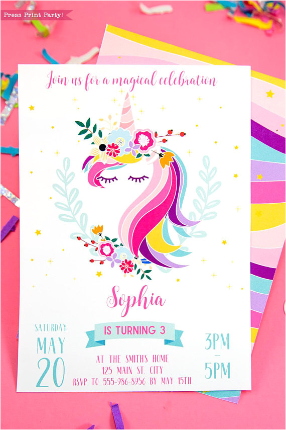 unicorn invitation printable press print party from Birthday Invitation Template Unicorn