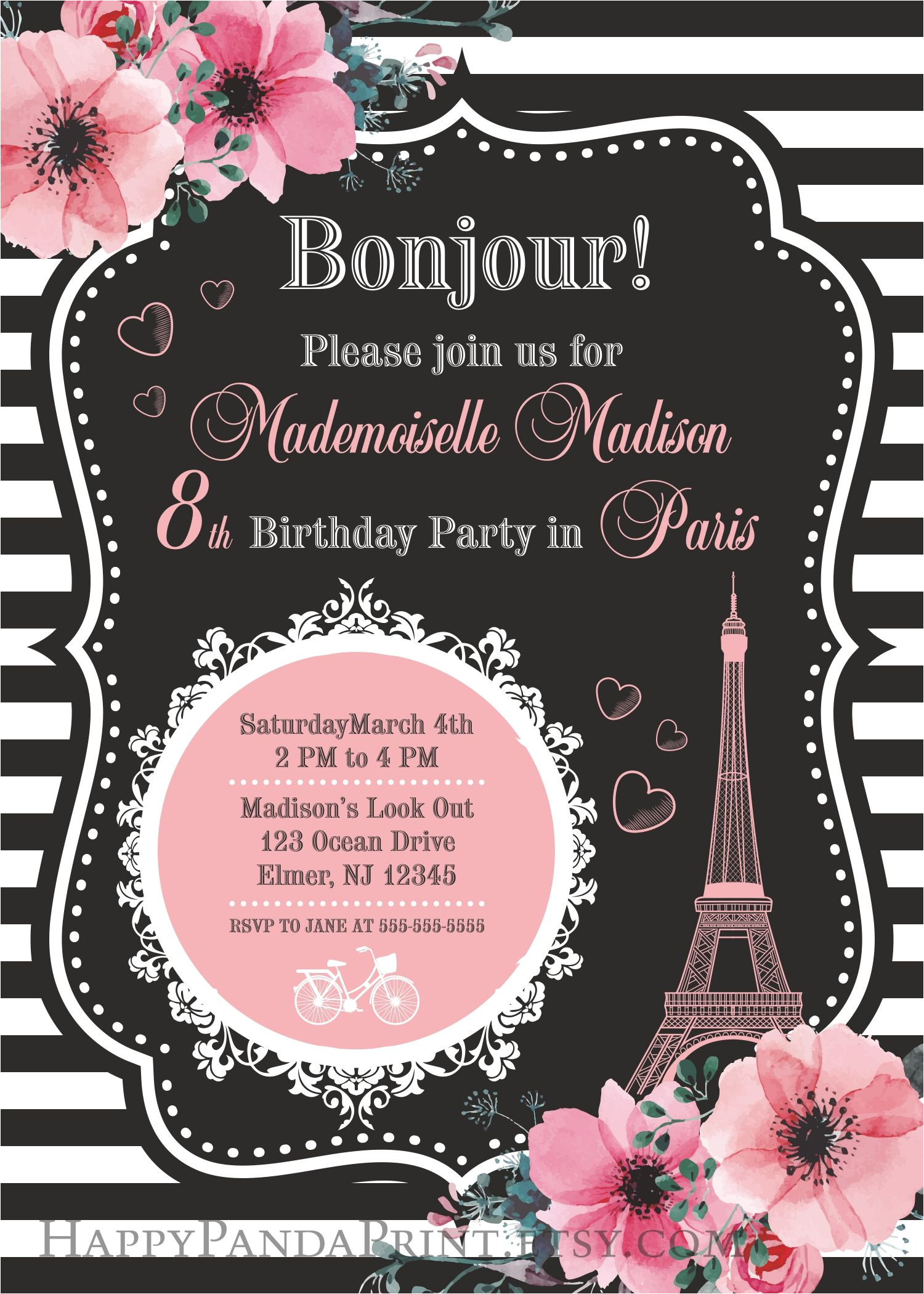 paris invitation printable or printed with free shipping from Birthday Party Invitation Template In French