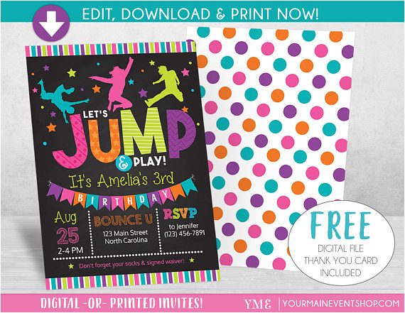 jump trampoline park birthday party invitation digital design from Birthday Party Invitation Template Trampoline