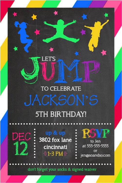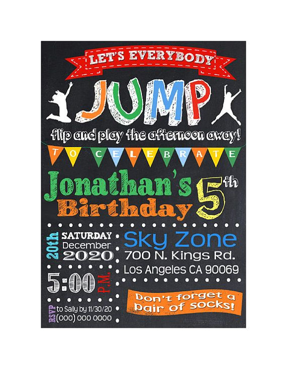 trampoline birthday party invitation jump invite chalkboard from Birthday Party Invitation Template Trampoline