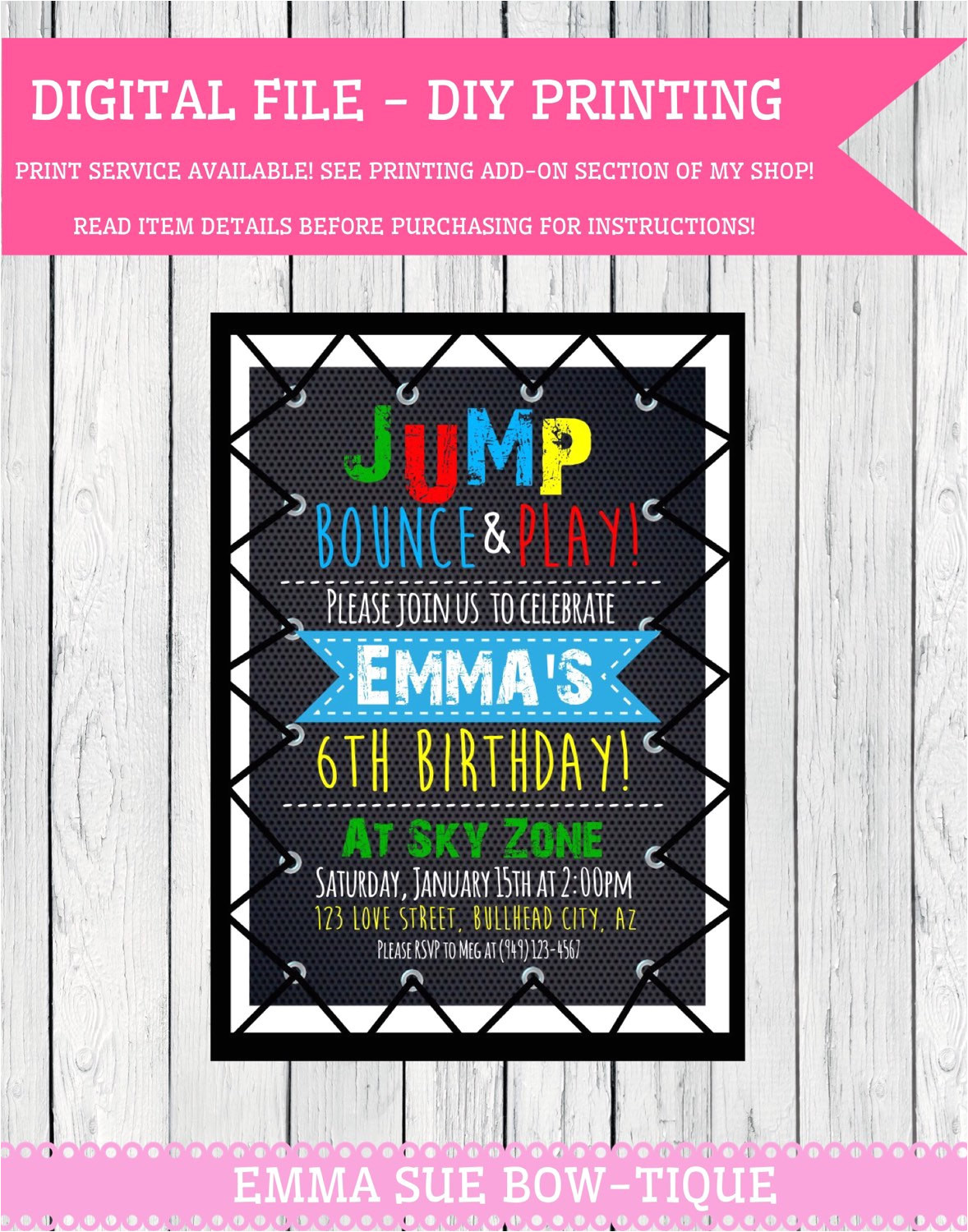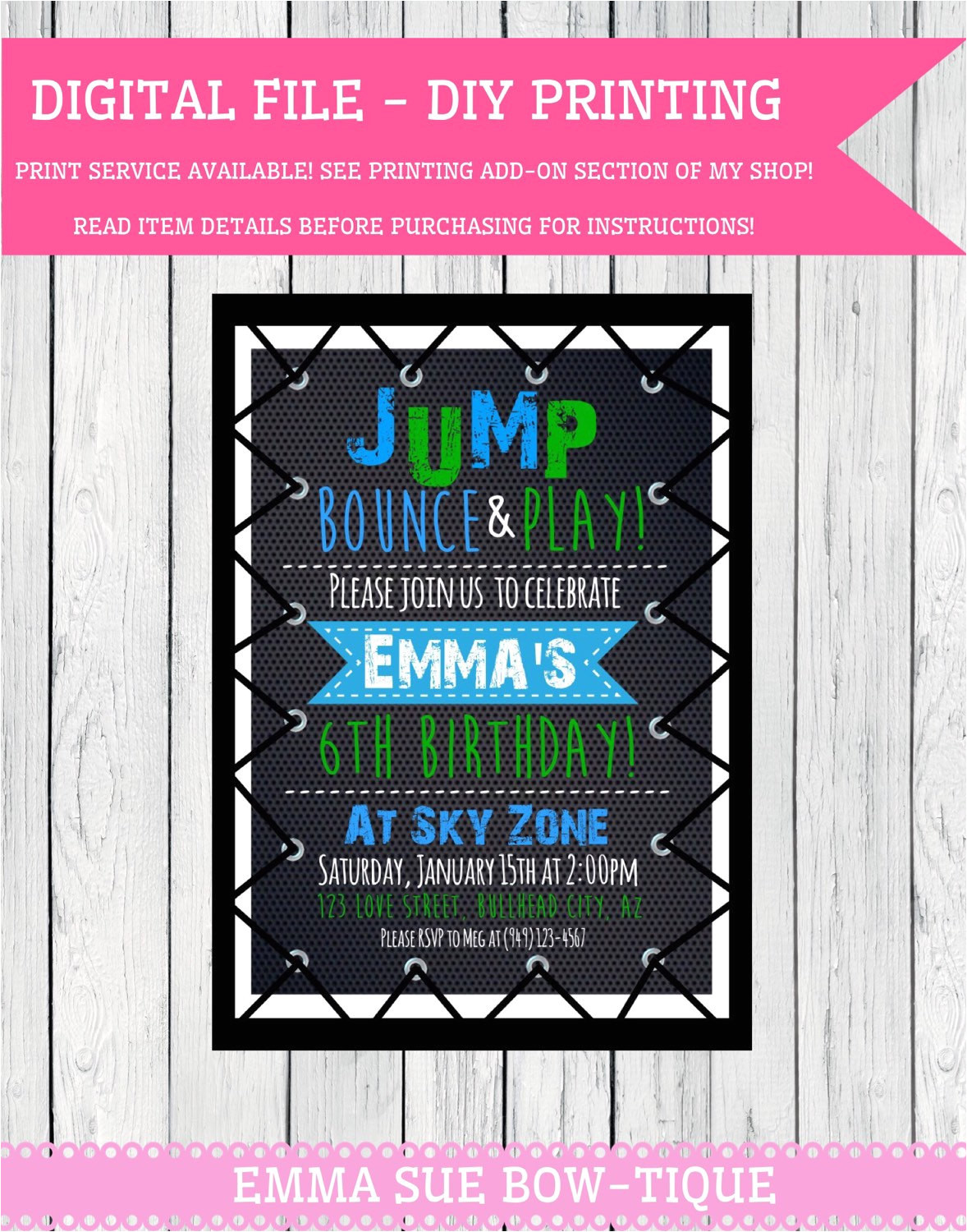 trampoline party personalized birthday invitation digital from Birthday Party Invitation Template Trampoline