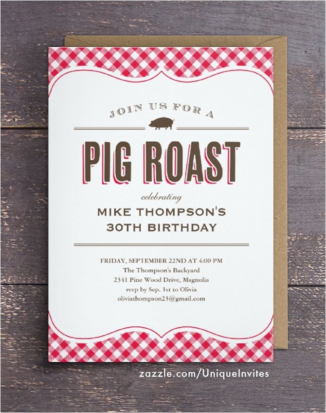 classic red plaid pig roast bbq birthday party 5×7 paper from birthday pig roast invitations
