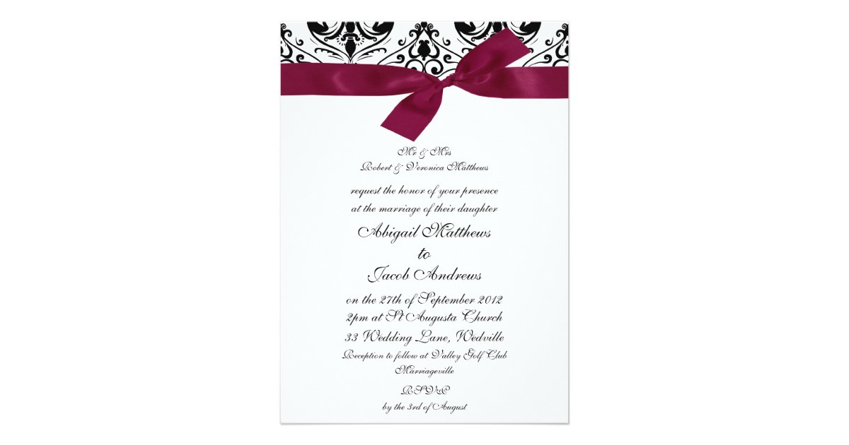 black burgundy ribbon wedding invitation zazzle from black and burgundy wedding invitations