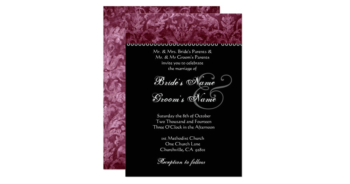 burgundy black white damask wedding invitation zazzle from black and burgundy wedding invitations