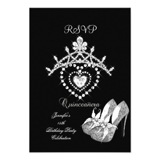 rsvp black white quinceanera party shoes tiara 3 5×5 paper from black and white quinceanera invitations