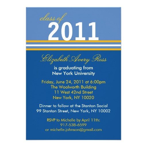trendy blue gold stripe graduation invitations 5 quot x 7 from blue and gold graduation invitations