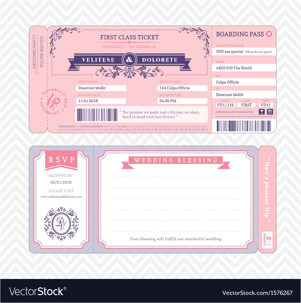 boarding pass wedding invitation template vector image from Boarding Pass Wedding Invitation Template