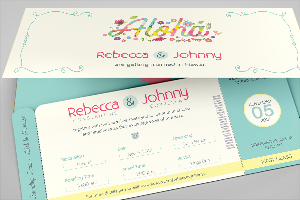 hawaiian wedding boarding pass invitation template from Boarding Pass Wedding Invitation Template