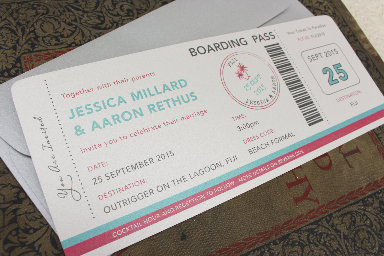 tropical palm tree boarding pass wedding invitation figi from Boarding Pass Wedding Invitation Template