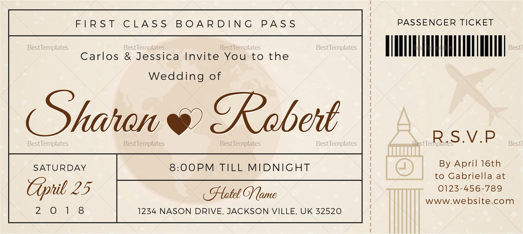 Boarding Pass Wedding Invitation Template sample: