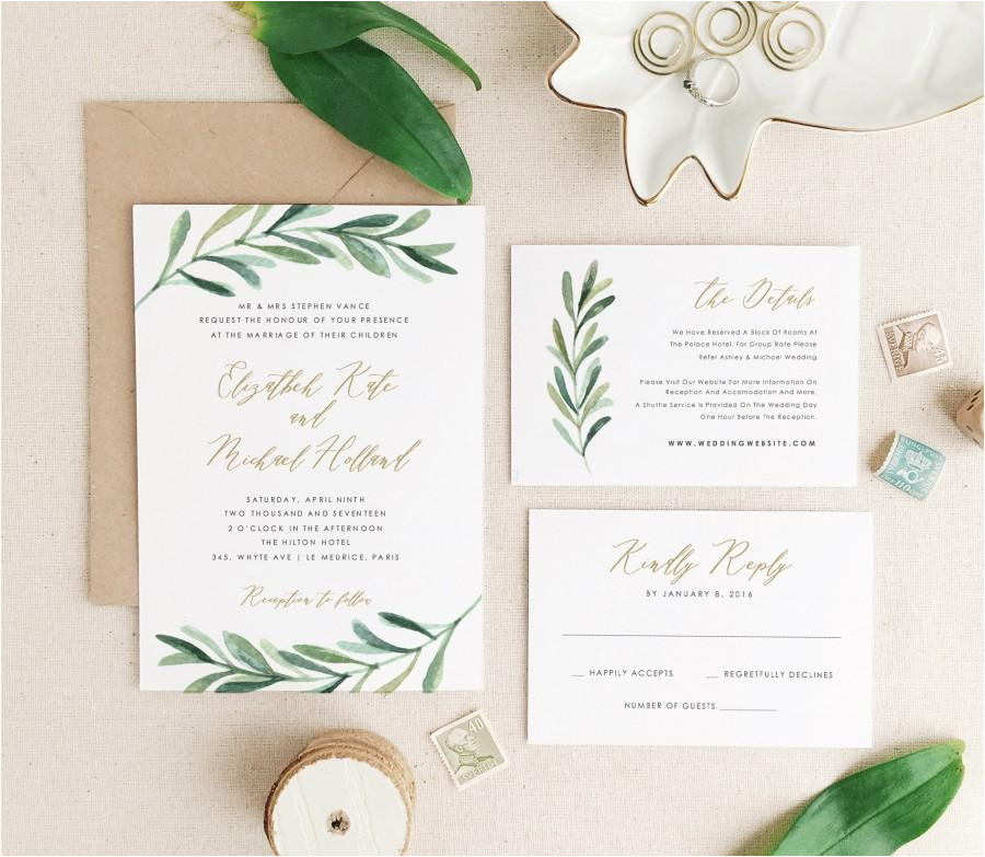 greenery gold botanical love wedding invitation template from Botanical Wedding Invitation Template