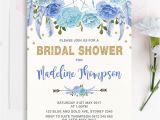 Boho Blue Gold Floral Bridal Shower Invitation Hens Night from bridal shower invitations australia