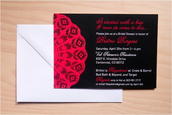 Bridal shower invitations should, if possible, be approached as a set which includes the invitation, RSVP card and compensation envelope and a letter seal for the main invitation envelope. You can go a long pretentiousness in showing your attention to detail and style by making sure these items be the same both in design and color but after that in paper stock. Again, a knowledgeable designer will always have these things in mind in imitation of you engage them to create your invitations.
