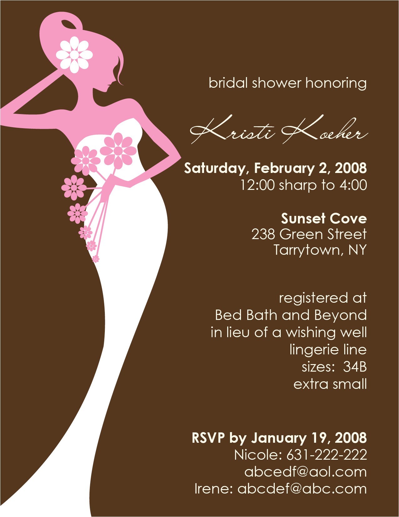 Bridal shower invitations should not forlorn invite your guests to the event, they should contain sure instructions upon the location of the shower, any theme that is subconscious used for the shower and an RSVP card that can put up to you determine the amount of guests you can expect. Including a self addressed stamped envelope inside the invitation appropriately that your guests can return the RSVP easily is next recommended.