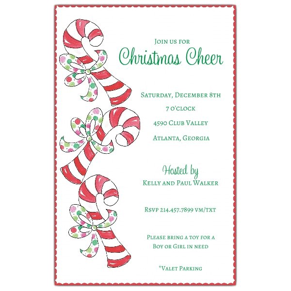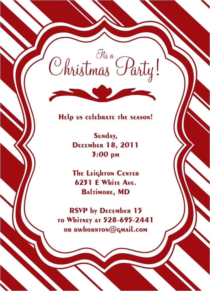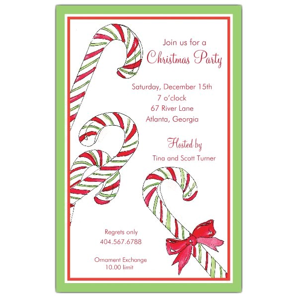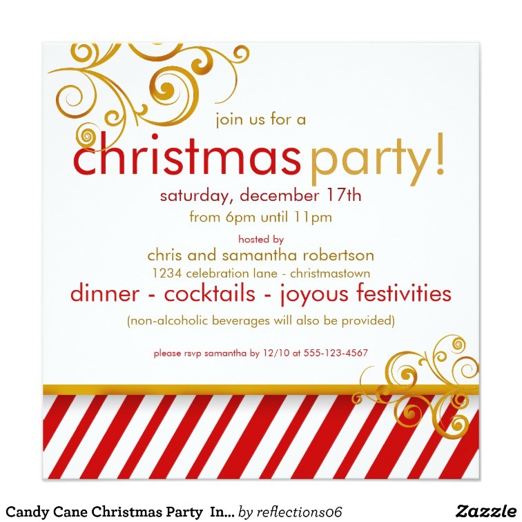 candy cane christmas party invitations sample: