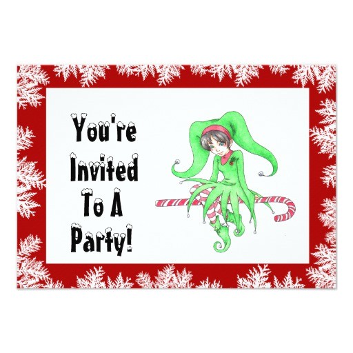Candy Cane Elf Holiday Party Invitation from candy cane christmas party invitations