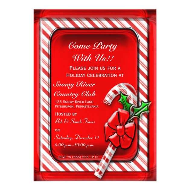 Candy Cane Holiday Party Invitation from candy cane christmas party invitations