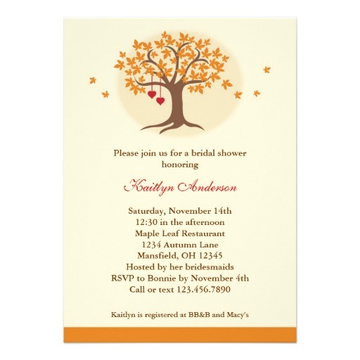 Fall Tree Bridal Shower Invitation 5" X 7" Invitation Card from cash bridal shower invitations