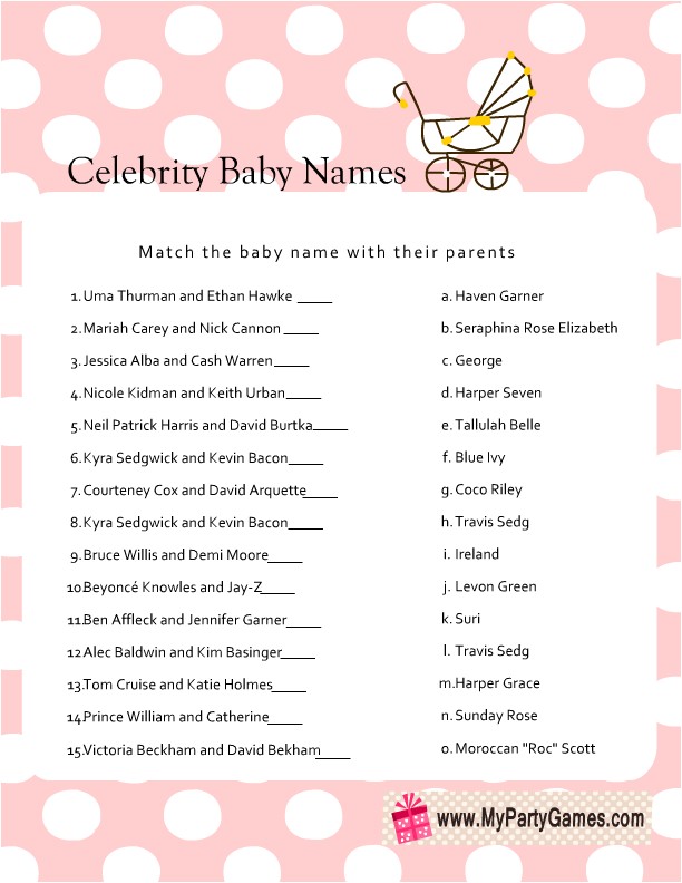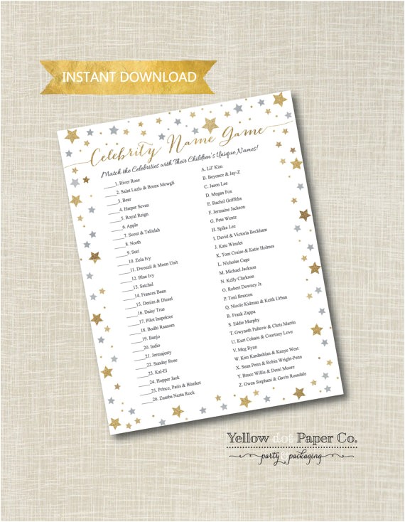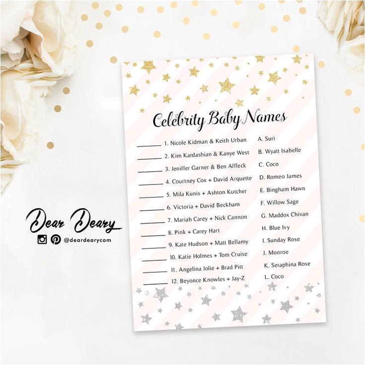 Celebrity Baby Name Game Baby Shower Game Girl by from celebrity baby shower invitations