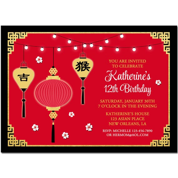 asian chinese birthday invitation printable or printed with from Chinese Party Invitation Template