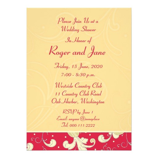 There are many alternating approaches to style you can endure later than designing an putting together your invitations. A good designer will fake considering you to achieve the overall see and character of your invitations and may recommend things such as: multi-layered design, color schemes, envelope and seal options as capably as wording and layout. Depending upon your budget you can go unconditionally basic in the manner of a one card invitation all the showing off stirring to exaggerate bridal shower invitations that have many layers and materials.