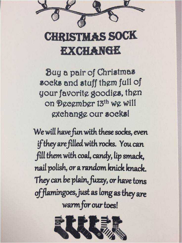 sock swap invite poem give students a sock to fill with from christmas sock exchange party invitation