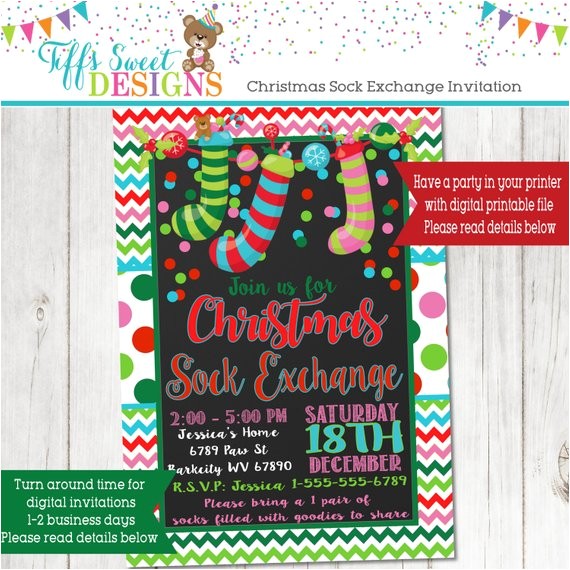 items similar to printable christmas sock exchange from christmas sock exchange party invitation