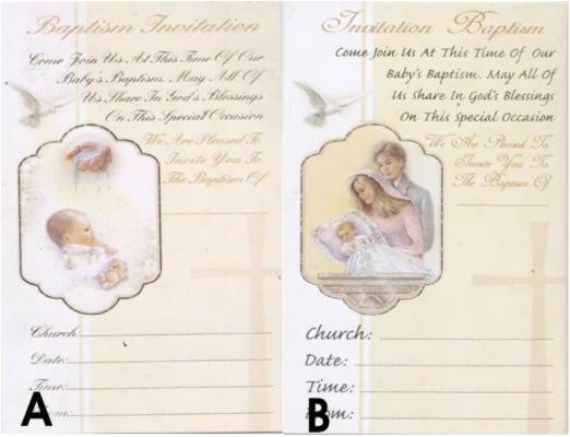 Baptism invitations are ultra-fun, and you can make one by hand and scan it into your computer and print combination color copies. Or, order from the thousands of pre-made designs upon dedicated greeting card and special matter invitational card websites.