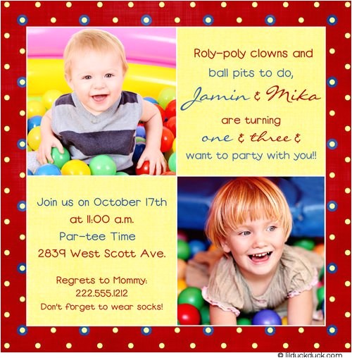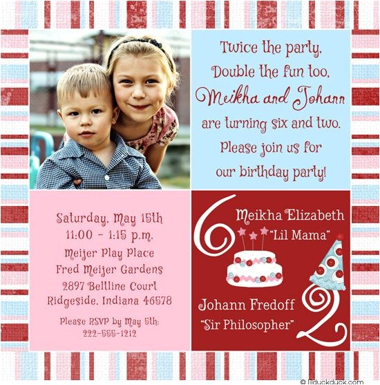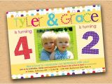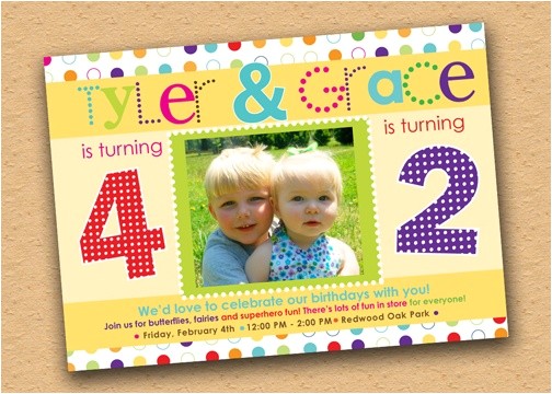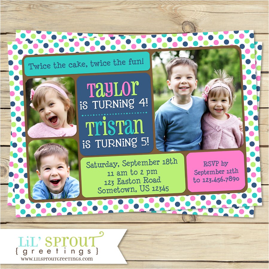 twin joint or sibling photo birthday invitation you print from combined birthday party invitation wording