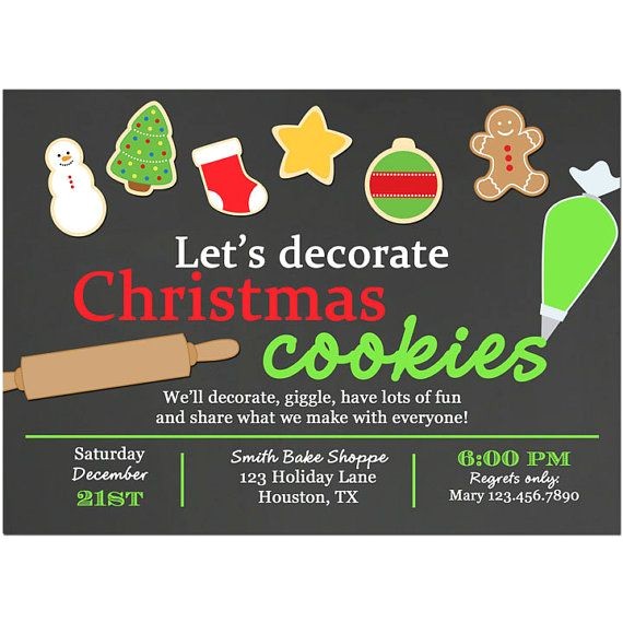 Christmas Cookie Invitation Printable or Printed by from cookie decorating party invitation wording