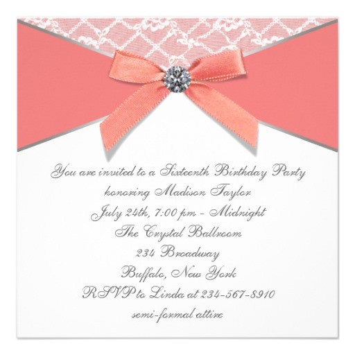 coral diamonds coral sweet 16 birthday party 5 25×5 25 from coral quinceanera invitations