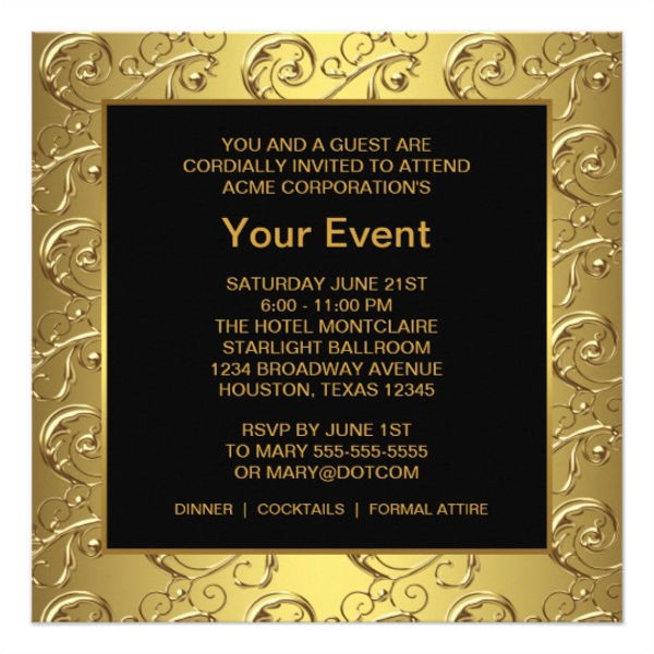 black and gold corporate party event template 6 5×8 75 from Corporate Party Invitation Template