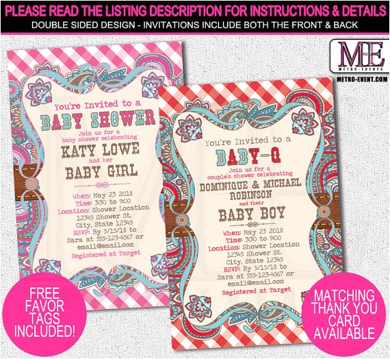 Baby Shower Invitations Country Theme Set of 10 Printed from country themed baby shower invitations