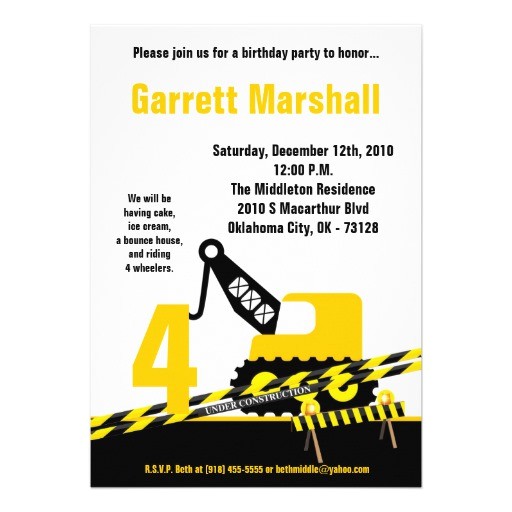 construction crane 3rd birthday personalized announcements from crane party invitations