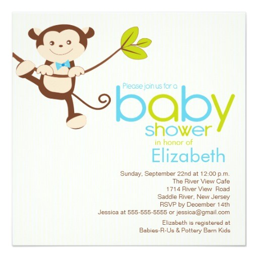 Cute Monkey Boy Baby Shower Invitation from cutest baby boy shower invitations