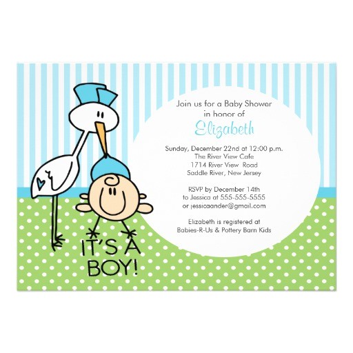 Cute Stork Baby BOY Baby Shower Invitations from cutest baby boy shower invitations