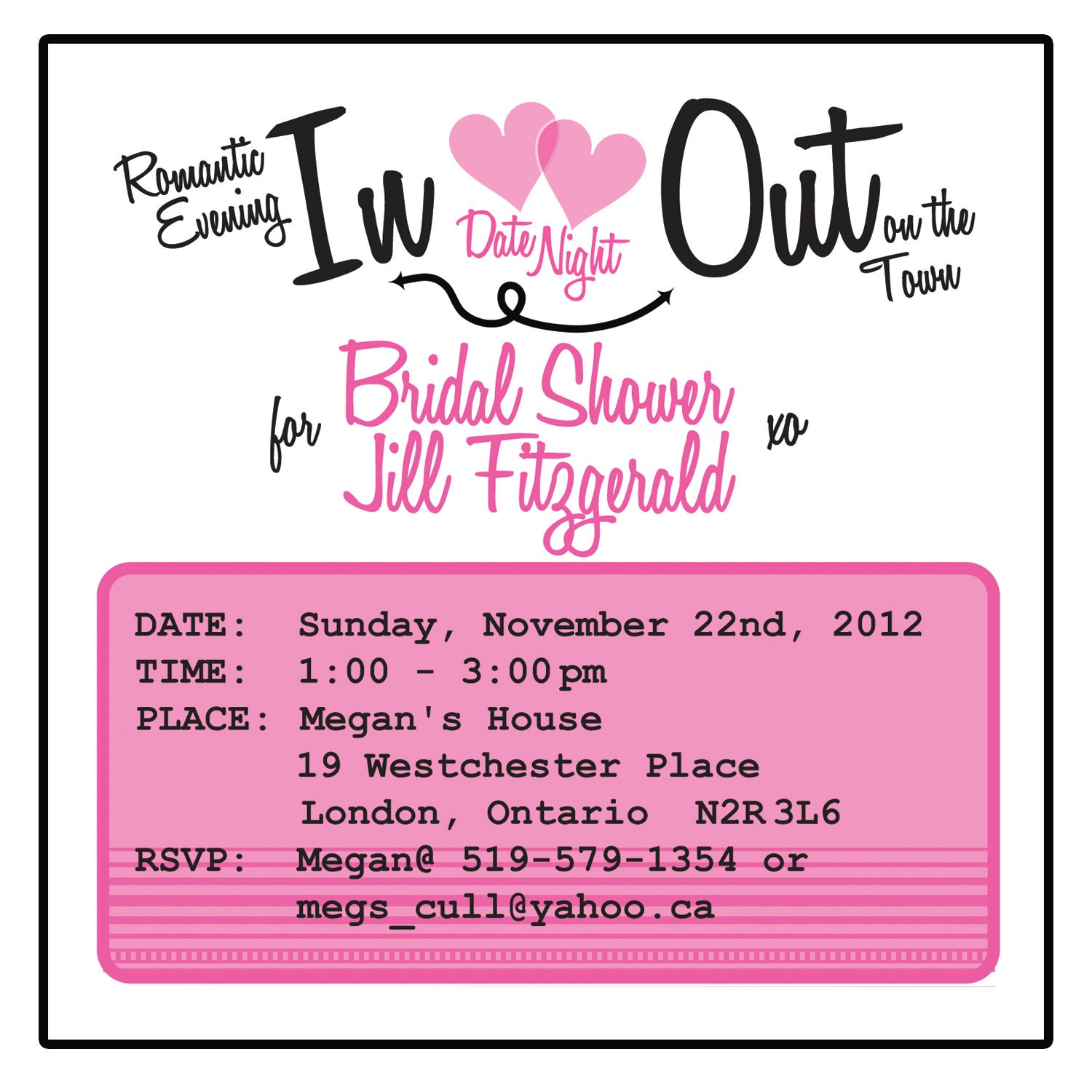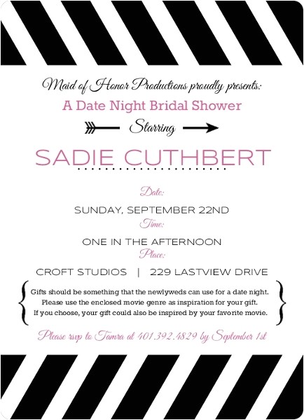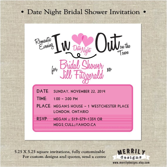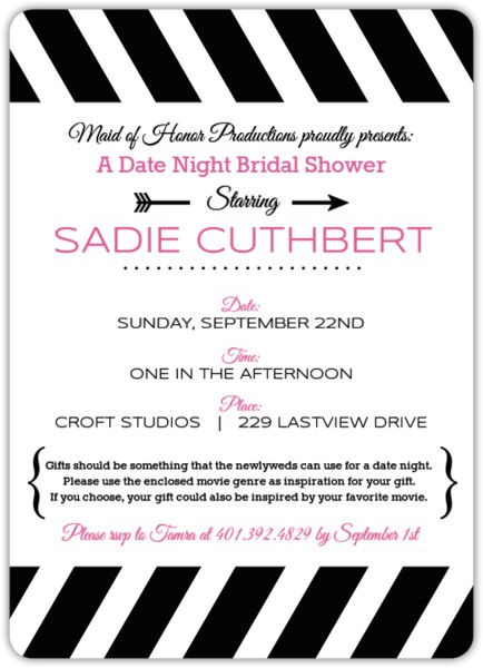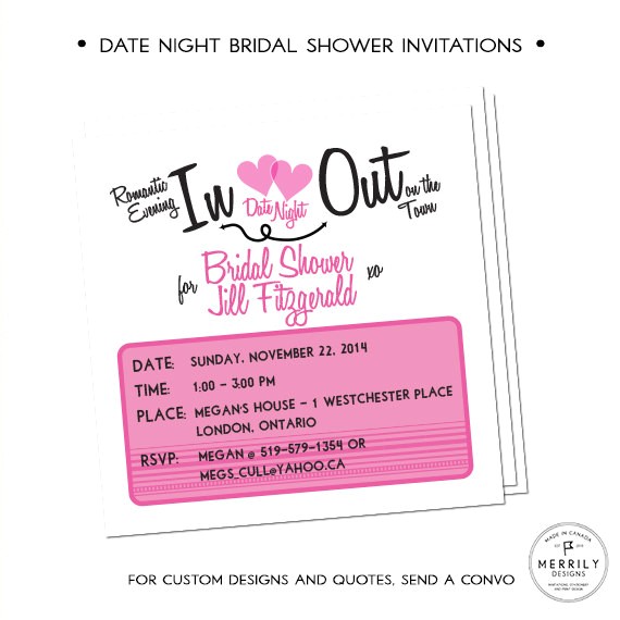 Back To Date Night themed Bridal Shower Invitations