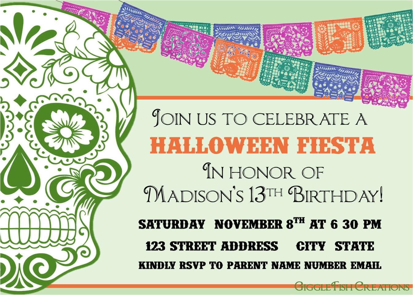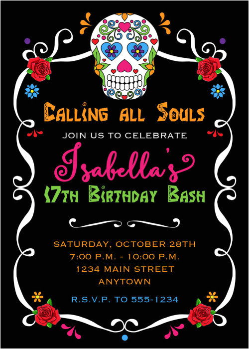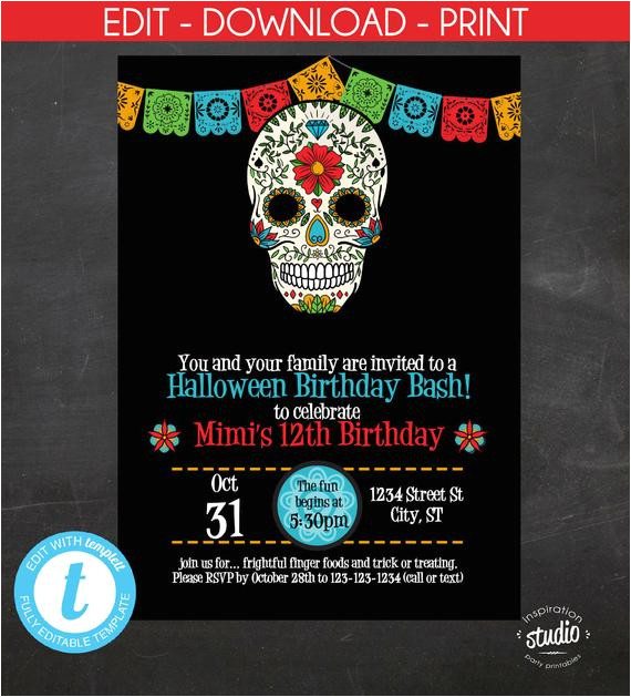sugar skull birthday invitation halloween birthday invite from Day Of The Dead Party Invitation Template