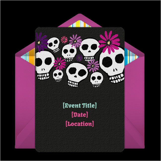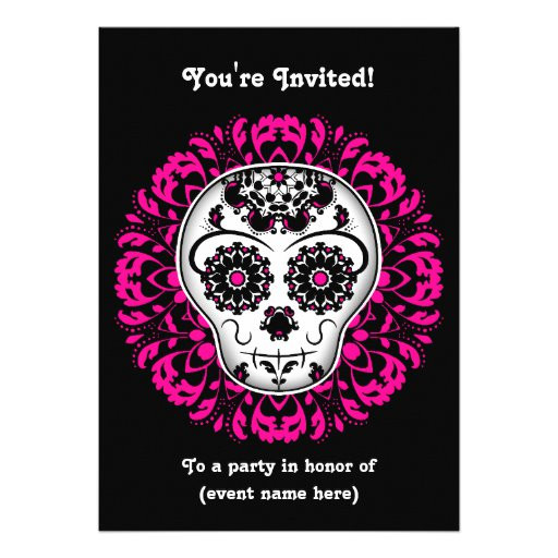 sugar skulls day of the dead custom birthday invitation from Day Of The Dead Party Invitation Template