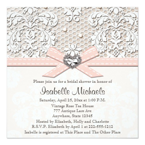 Pink Pearl Lace Diamond Bridal Shower Invitations from diamond bridal shower invitations