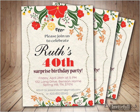 40th Birthday Invitation Adult Birthday invitation DIY from diy 40th birthday invitations