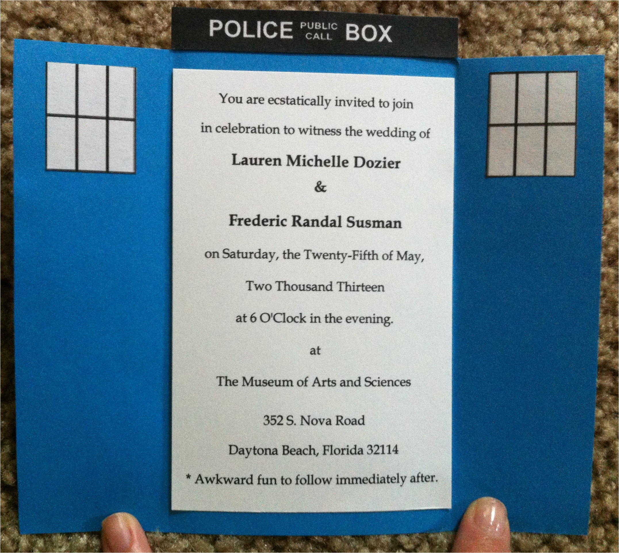 how we made our tardis invitations lauren and ric 39 s wedding from Doctor Who Wedding Invitation Template