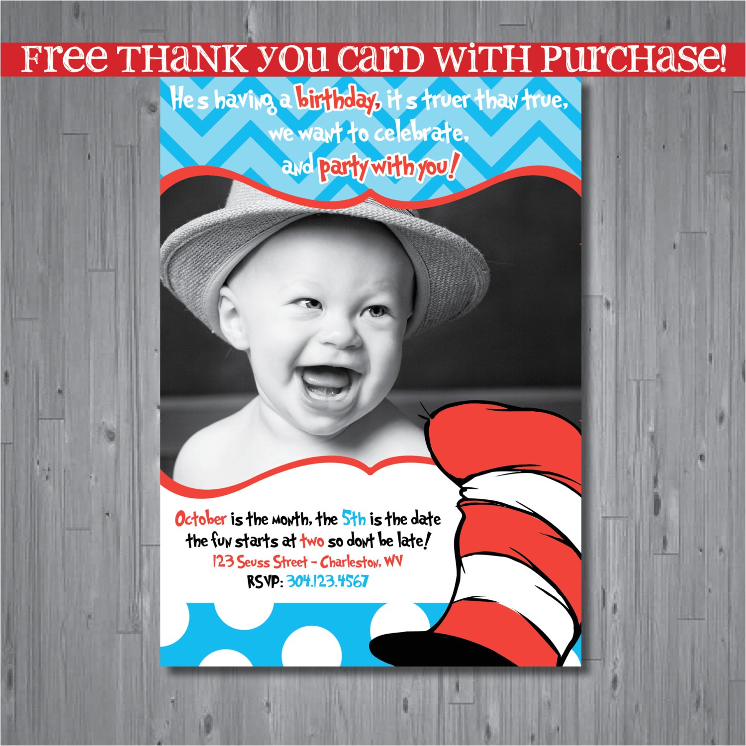 Custom Personalized Dr Seuss Inspired 1st 2nd or 3rd from dr seuss first birthday invitations