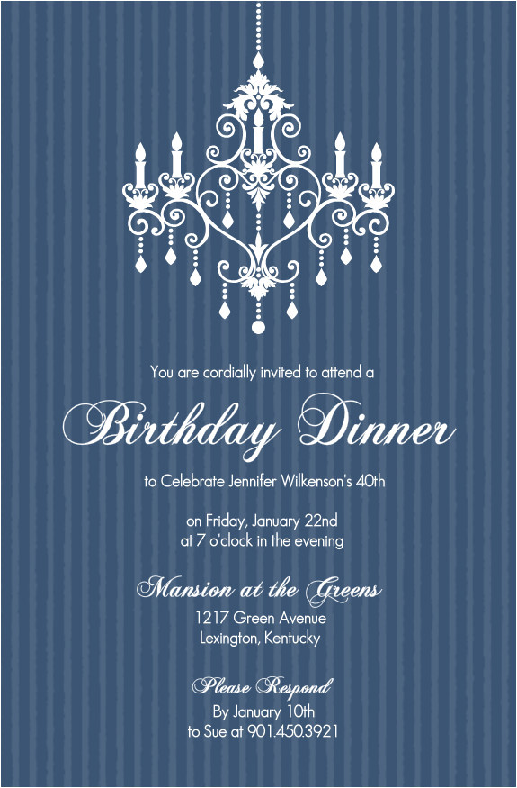 40th birthday invitations elegant chandelier blue from Elegant 40Th Birthday Invitation Template