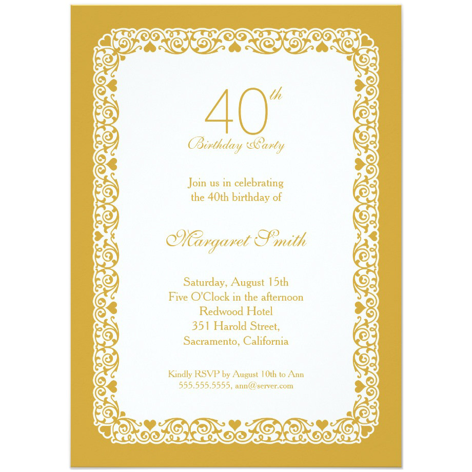 elegant 40th annniversary party invitations zazzle from Elegant 40Th Birthday Invitation Template