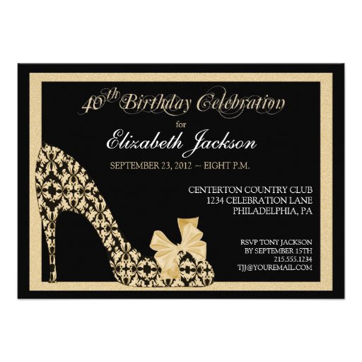 elegant 40th birthday damask shoe invitation 11 cm x 16 cm from Elegant 40Th Birthday Invitation Template