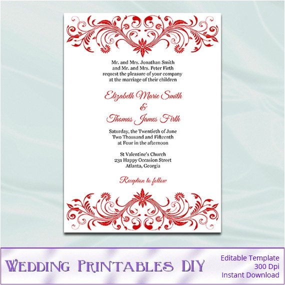 red wedding invitation template diy elegant bridal shower from Elegant Birthday Invitation Templates Free Printable