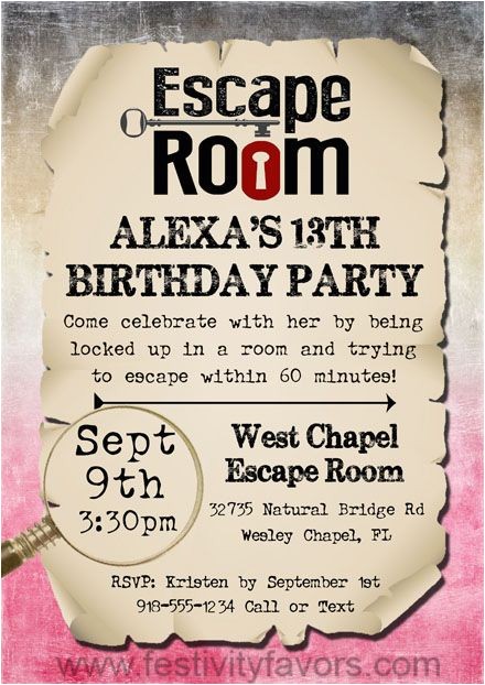 escape room invite gray girls or boys birthday pink from escape room party invitation ideas