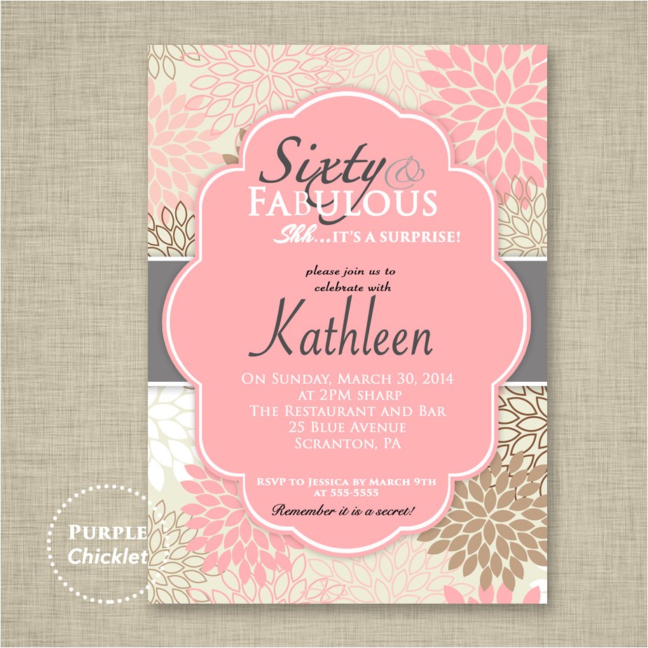 pink 60th birthday invitation sixty and fabulous surprise from etsy 60th birthday invitations